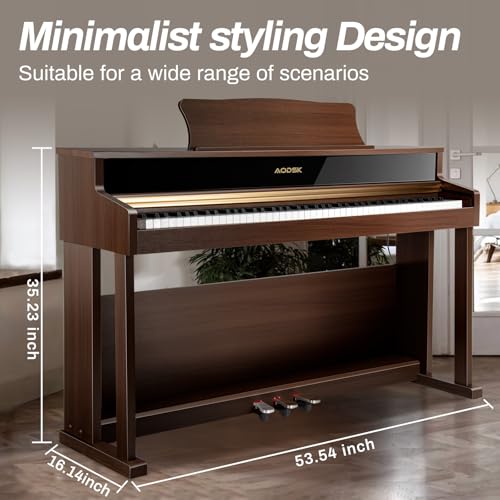 88-Key Digital Piano, Heavy Hammered Keyboard, Upright Design, Brown Woodgrain Case, Comes with Headphones & Online Lessons