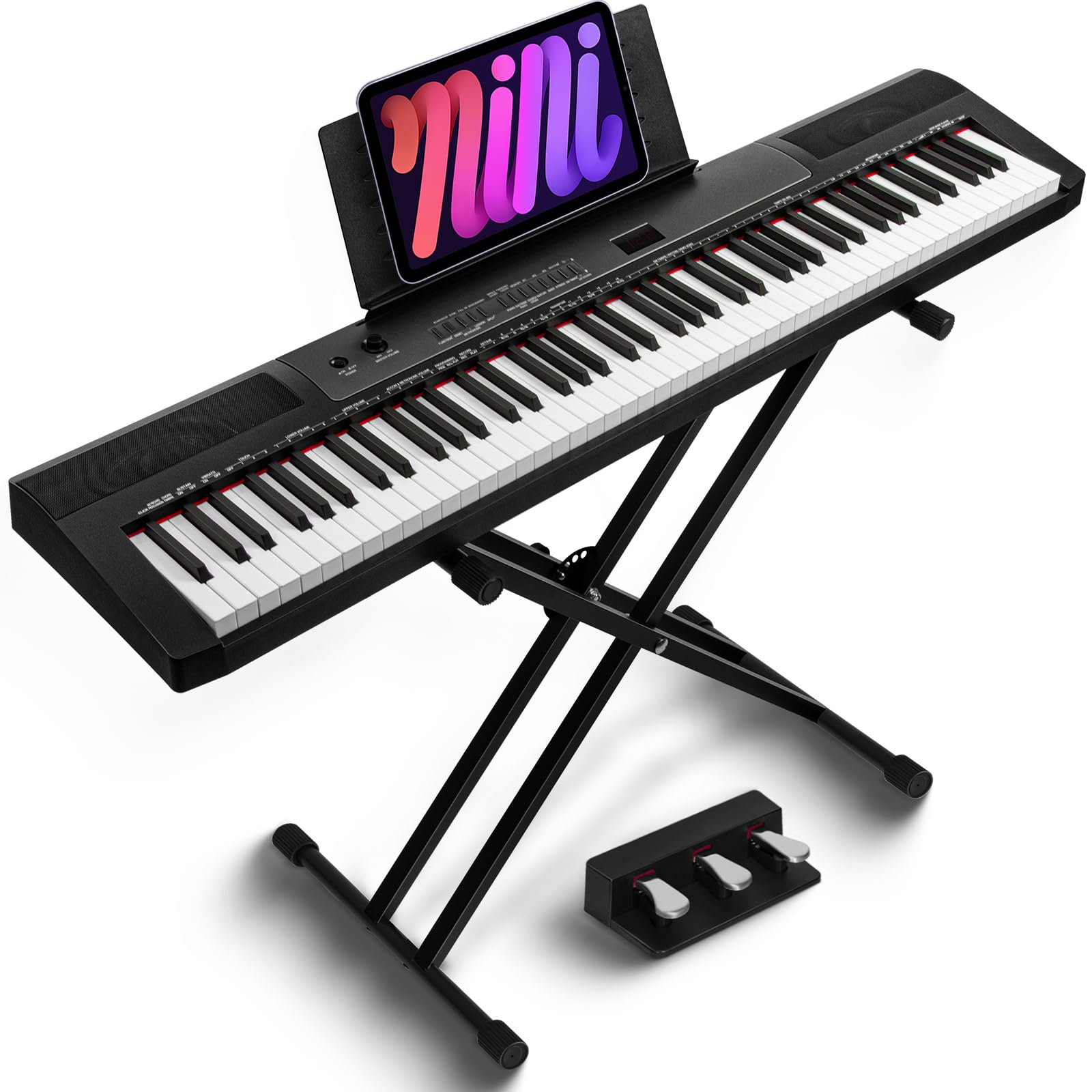 - 【Portable Digital Piano】The lightweight body design weighs only 15.87 pounds and can be easily picked up with one hand,making it very suitable for outdoor performances.The equipped universal digital piano stand is not only suitable for our piano,it is a universal piano stand that is suitable for all 88-key digital pianos.
