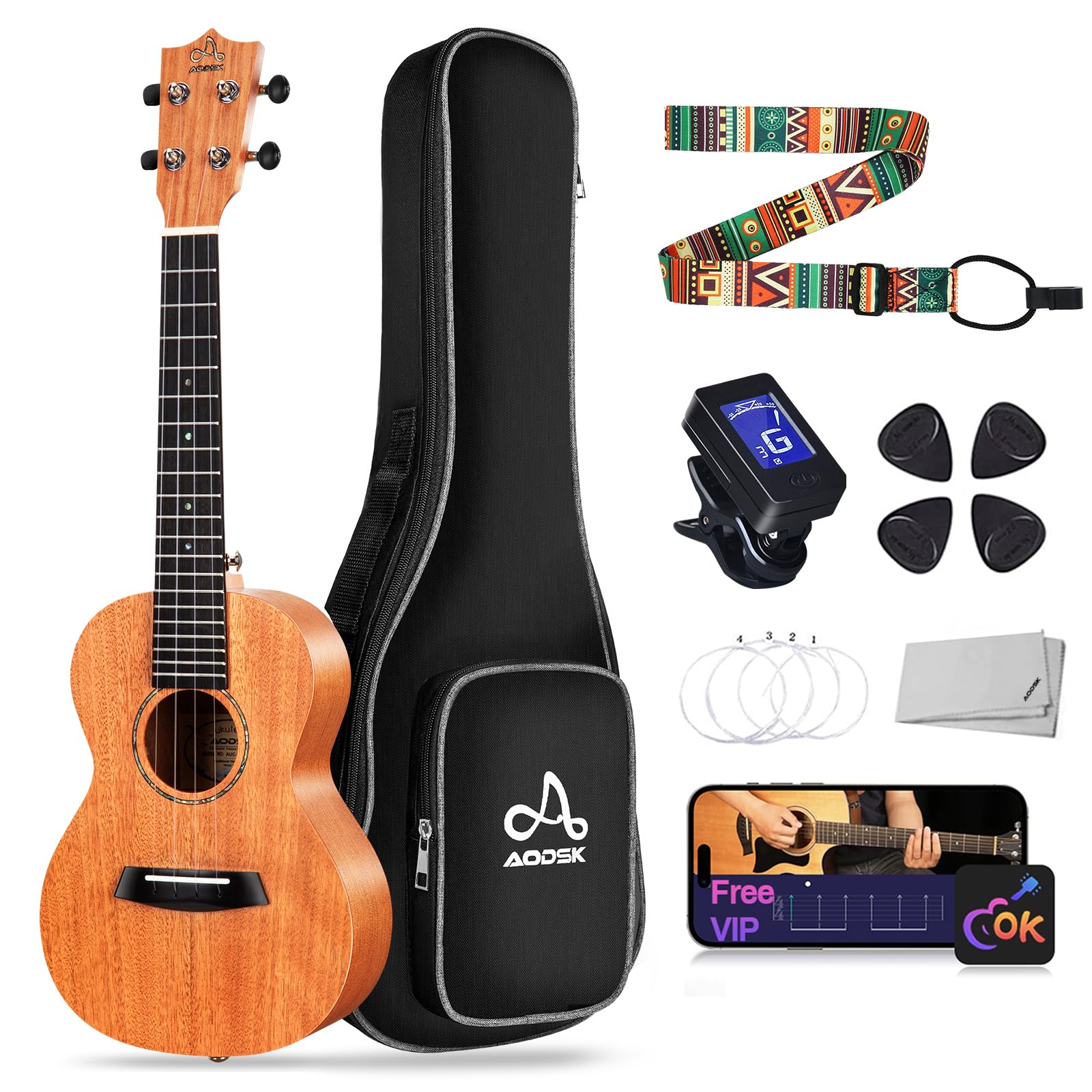 - 【Warm and Rich Sound】AODSK Ukulele Sapele top body and neck give you a richer,brighter,warmer sound;high-end resin nut and saddle with 4 highly polished smooth carbon nylon Strings combine for clear,beautiful resonance and more sustain.