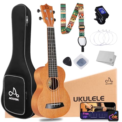 - 【Warm and Rich Sound】AODSK Ukulele Sapele top body and neck give you a richer,brighter,warmer sound;high-end resin nut and saddle with 4 highly polished smooth carbon nylon Strings combine for clear,beautiful resonance and more sustain.